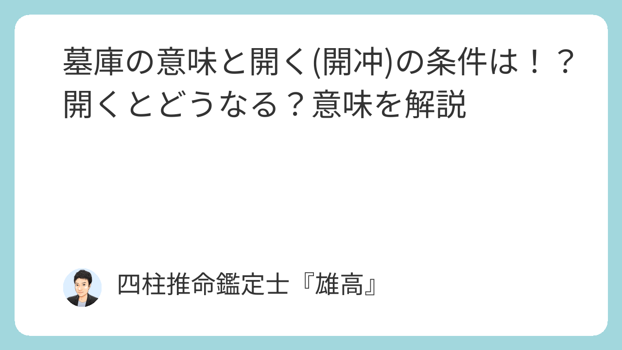 命式にある墓庫の十二支に対し、正反対の十二支が巡ってきたとき、激しい衝突(冲)が起こります。このショックによって土が掘り返され、金庫の扉が壊れて開き、中身が飛び出してくるのです。
