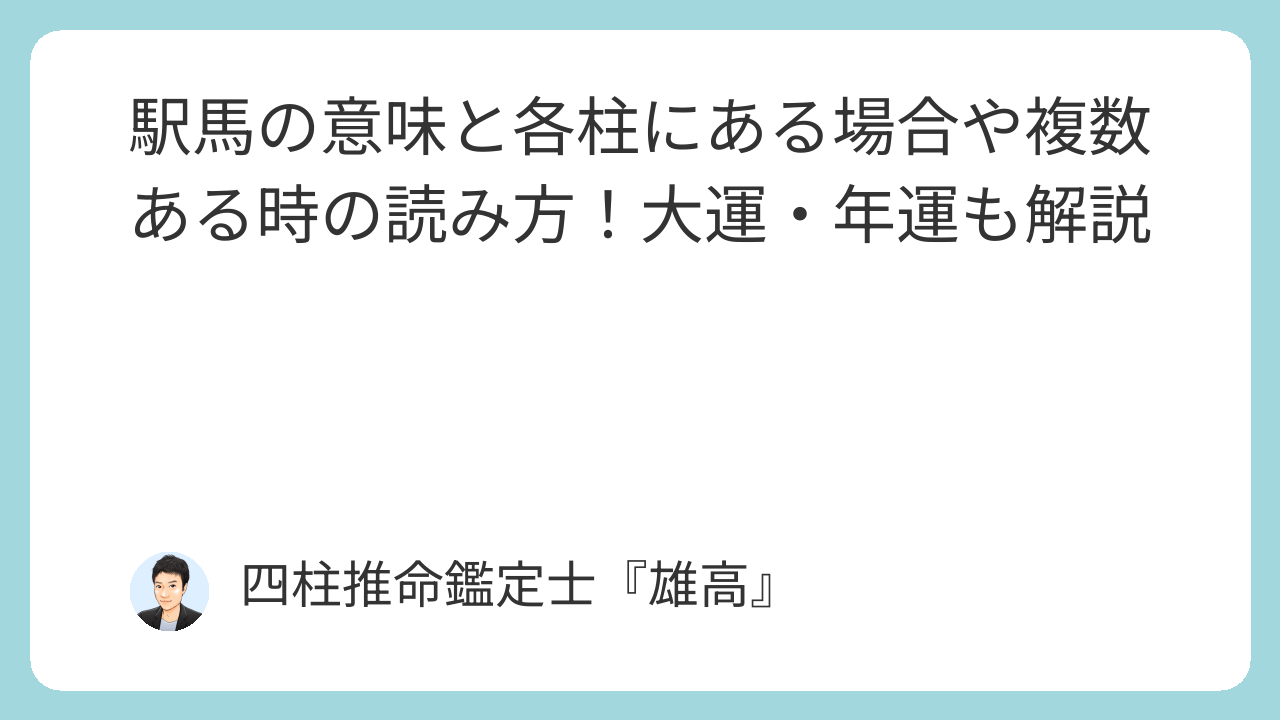 今回は、駅馬の成立条件から、各柱にある意味、そして運気で巡ってきた時の影響までを詳しく解説します。