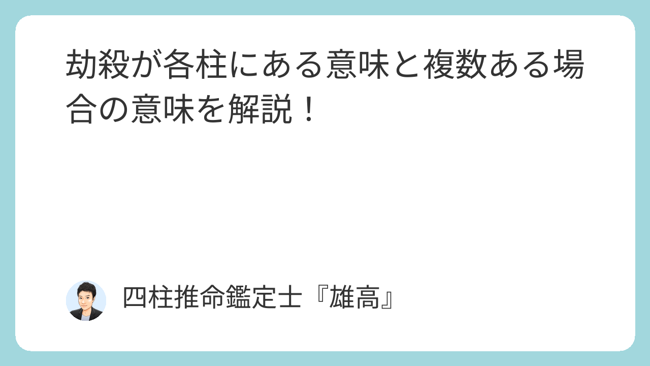 今回は、この強烈なエネルギーを持つ劫殺が、命式のどこにあるかによる影響の違いと、複数持っている場合の解釈について解説します。