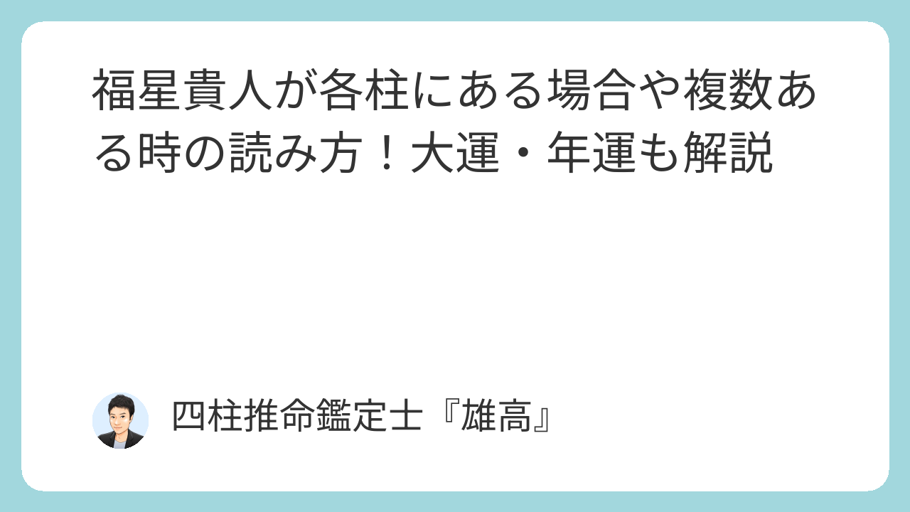 ガツガツと努力しなくても、なぜか何とかなってしまう。そんな不思議な徳を持った福星貴人について、各柱にある意味や、運気で巡ってきた時の影響について詳しく解説します。