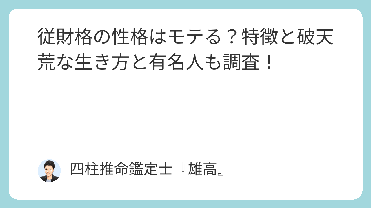 お金に愛され、異性に愛され、しかし一歩間違えれば全てを失う。そんなスリル満点で破天荒な従財格の人生とはどのようなものなのか。その魅力的な性格と、モテる理由について深掘りしていきましょう。